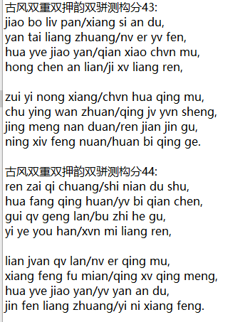 古风双重双押韵双骈测构分43: