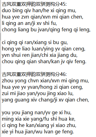 古风双重双押韵双骈测构分46:
