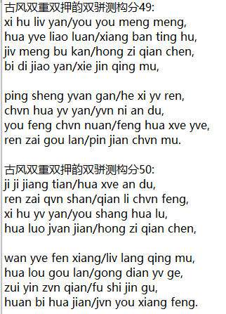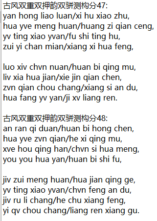 古风双重双押韵双骈测构分48: