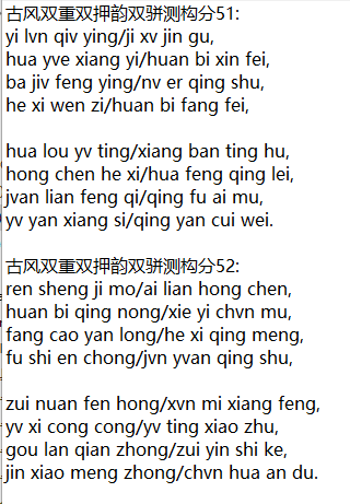 古风双重双押韵双骈测构分56: