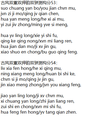 古风双重双押韵双骈测构分54: